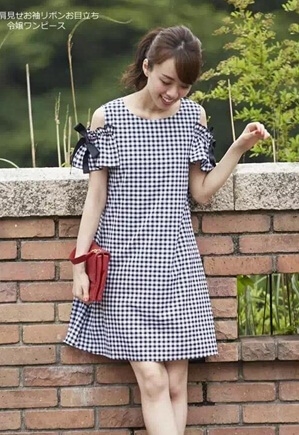 Kiểu thiết kế trễ vai, khoe vai được ưa chuộng nhất năm nay. Vì vậy mà nó được thấy ở rất nhiều mẫu đầm trong đó mẫu đầm caro công sở cũng không phải ngoại lệ. Một chiếc đầm kẻ caro công sở có phần vai trễ và tay áo xòe bồng bềnh rất phù hợp cho cô nàng có nước da trắng với bờ vai thon.
