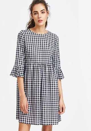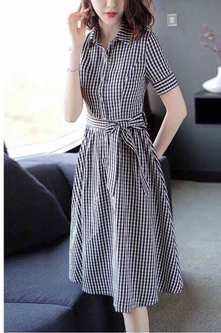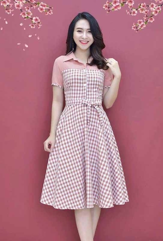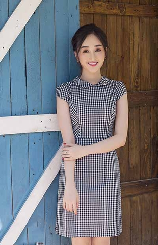Mẫu đầm công sở caro babydoll