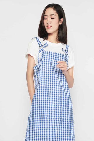 Đây là thiết kế rất trẻ trung tinh nghịch phù hợp với những cô nàng trẻ tuổi được biến tấu từ những mẫu đầm có dây đeo và đầm yếm. Màu của những chiếc đầm như này thường là màu tối, kẻ caro nhỏ.