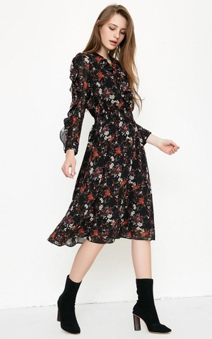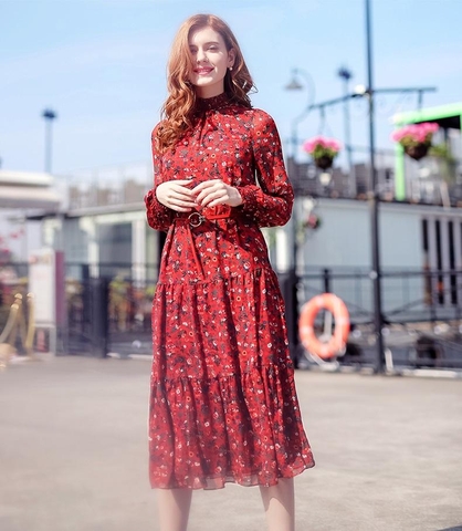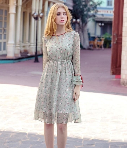 Mẫu váy đầm voan này luôn được các cô nàng công sở với phong cách nhẹ nhàng, lịch sự. Tạo điểm nhấn bởi một chiếc cổ cao, kín đáo nhưng không kém cuốn hút. Kết hợp cùng những chiếc nơ nhỏ xinh được cách điệu ở phần tay áo, eo chun che khuyết điểm vòng 2 và màu sắc đa dạng, đặc biệt là dáng đầm voan hoa nhí.