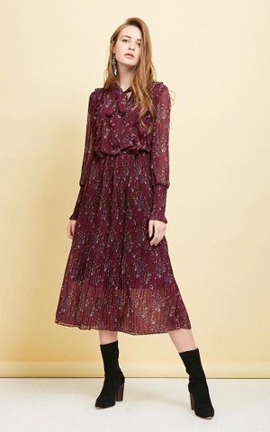 Mẫu đầm voan chân xếp ly kết hợp thắt nơ eo