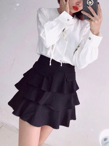 Đây chính là dạng váy rời công sở có nhiều lớp gấp chéo nhìn như chiếc khăn ăn.