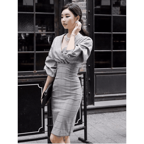 Đầm công sở tay bồng dáng ôm tôn dáng, thanh lịch