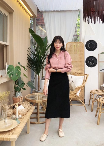 Kết hợp áo cardigan kiểu dáng sơ mi cùng với váy hoặc quần tây