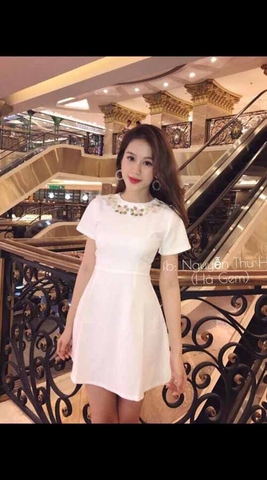 Đầm công sở dáng xòe màu trắng. Tuy đến công sở để làm việc nhưng có những kiểu dáng đầm, màu đầm vừa tạo chất đi đi chơi vừa tạo dáng văn phòng phù hợp cho bạn ở