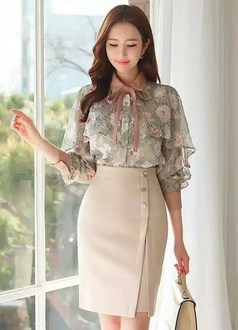 Với chân váy Hàn Quốc, bạn nên mix cùng các kiểu áo sơ mi để tạo nên hình ảnh nữ tính và thanh lịch nhất. Một chút cách điệu trong kiểu áo sẽ giúp bạn ghi điểm trọn vẹn về mức độ xinh xắn và trẻ trung.