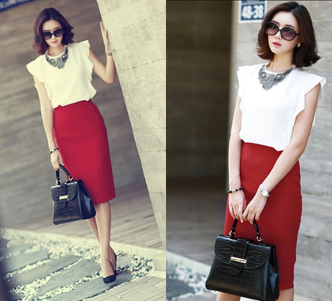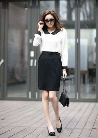 Một chiếc váy bút chì cạp cao diện kèm sơ mi, áo thun ôm kết hợp với một đôi giày mũi chắc chắn sẽ tạo nên một phong cách thời trang vô cùng độc đáo. Một sự kết hợp mang tính chất truyền thống nhưng lại không nhàm chán, ngược lại chân váy khi được kết hợp theo kiểu này sẽ mang lại cho bạn một phong cách riêng có. Một vẻ đẹp kín đáo, thanh lịch và đầy lôi cuốn. Chất công sở đã làm nhiều cô gái văn phòng đắm say và yêu thích.