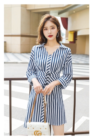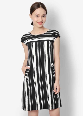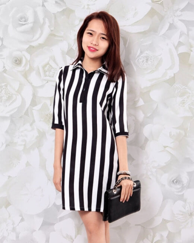 Người đối diện sẽ bị cuốn hút bởi những đường kẻ sọc trên chiếc đầm. Chiếc đầm khiến cho cô nàng không còn cảm giác mất tự tin khi đứng trước người khác. Ngược lại, các nàng có thể thoải mái tự tin sải bước như những người mẫu ở nơi công sở.