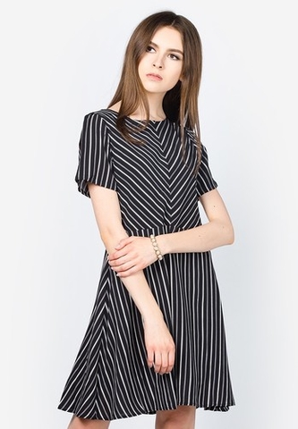 Người đối diện sẽ bị cuốn hút bởi những đường kẻ sọc trên chiếc đầm. Chiếc đầm khiến cho cô nàng không còn cảm giác mất tự tin khi đứng trước người khác. Ngược lại, các nàng có thể thoải mái tự tin sải bước như những người mẫu ở nơi công sở.
