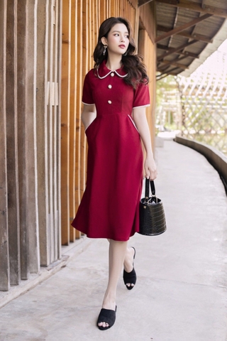 2. Lịch thiệp, tinh tế trong kiểu đầm đỏ chữ A