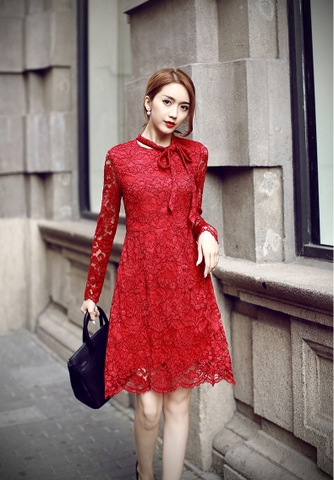3. Dễ thương, kiêu kỳ trong kiểu đầm ren đỏ