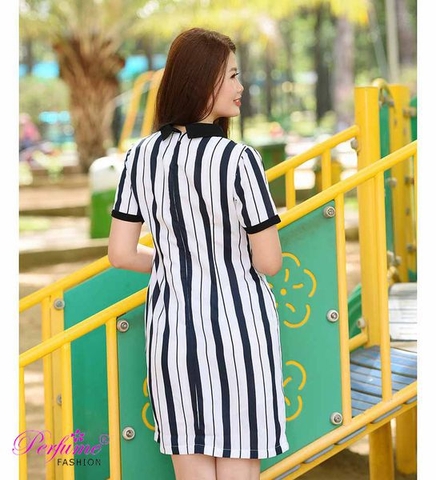 Họa tiết kẻ sọc bắt mắt, đơn giản được chị em yêu thích và sưu tầm trong thời trang bởi tính thẩm mỹ và sự sang trọng,trẻ trung mà chẳng hề phải lo lỗi mốt.Thiết kế nổi bật với cổ sơ mi màu đen giúp tạo điểm nhấn cho toàn bộ trang phục kết hợp cùng kiểu dáng tay ngắn viền đen vừa nhẹ nhàng vừa duyên dáng, lại thoáng mát vô cùng phù hợp với tiết trời của những ngày hè oi ả. Nếu 3 vòng của bạn chưa được hoàn hảo thì đừng quá lo lắng nhé! Với kiểu dáng đầm ôm sát dáng suông kẻ sọc sẽ giúp bạn che đi nhiều khiếm khuyết của cơ thể và tôn lên nét duyên dáng, đáng yêu của phái đẹp.