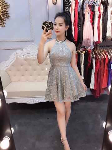 Tông màu bạch kim cũng có thể mang đến sự may mắn, thuận lợi cho các chị em mệnh Thủy. Vì vậy, các nàng có thể cân nhắc đến mẫu đầm bạch kim form xòe ngắn điệu đà này.