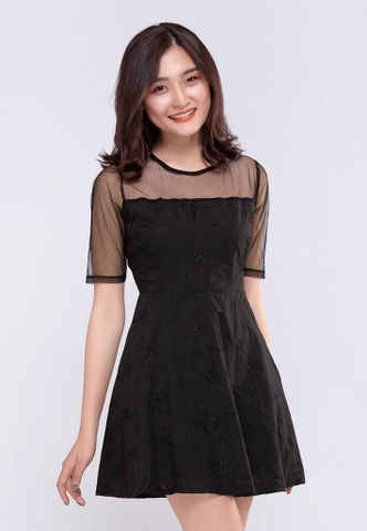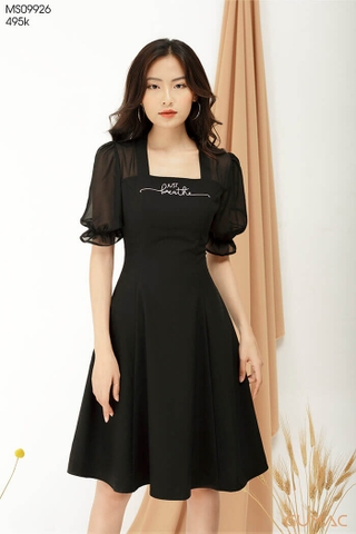 Khí chất của phái đẹp chốn công sở sẽ được tôn vinh nếu chọn mẫu đầm đen xòe dáng cổ vuông xinh đẹp. Đầm được lựa chọn thiết kế bằng chất liệu Mango Korea cao cấp. Đặc biệt, phần tay phồng phối lưới làm từ chất liệu Organza.