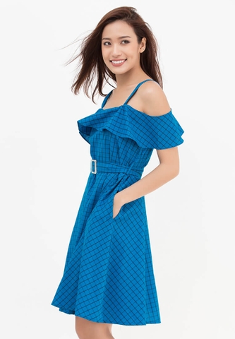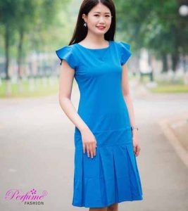 Nếu bạn muốn chọn một tông màu xanh dương nhã nhặn hơn có thể cân nhắc đến mẫu đầm xòe màu xanh xếp ly dưới đây. Được làm từ chất liệu tuyết mưa, thiết kế đầm rất đơn giản với phần tay xòe thời trang.