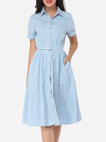 Cổ điển và vô cùng an toàn, váy sơ mi được chị em tín nhiệm nhất. Kiểu dáng này mang lại cho các cô gái vẻ tự tin, năng động lại vẫn nữ tính. Để không bị khô cứn bạn nên chọn chất liệu cotton, chiffon hay tơ rayon. Họa tiết kẻ sọc hoặc trơn, màu trung tính như nâu đất, xanh da trời nhẹ, vàng nâu…là phù hợp nhất cho mẫu váy này.