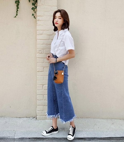 Với thiết kế kiểu quần jean này thì bạn nên chọn kết hợp chúng với áo sơ mi, áo croptop hay áo hay dây đều được. Set đồ này sẽ giúp bạn có được vẻ gọn gàng nhưng vẫn rất gợi cảm và cá tính. Tuy nhiên, một điều cần lưu ý là hầu hết các mẫu quần jean ống rộng trên thị trường đều được thiết kế rất đơn giản và trơn không họa tiết. Vì vậy, màu sắc áo bạn chọn kết hợp cùng nên tươi vui hơn để thu hút sự chú ý của người đối diện một cách hiệu quả nhất.